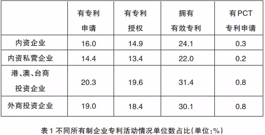 從所有制結(jié)構(gòu)看,外資企業(yè)和港澳臺(tái)資企業(yè)具有更強(qiáng)的專利活動(dòng)能力,特別是在發(fā)明專利方面有更大優(yōu)勢(shì),進(jìn)而支持其高利潤(rùn)水平。反觀內(nèi)資企業(yè),特別是私營(yíng)企業(yè)的專利活動(dòng)相對(duì)較弱,無(wú)論在專利意識(shí)上,還是在研發(fā)投入能力和專利獲得能力上,都有待提高。盡管所有制的政策差異會(huì)逐漸淡化,但如何在少數(shù)代表性企業(yè)之外,更為廣泛地推動(dòng)以私營(yíng)企業(yè)為代表的廣大內(nèi)資企業(yè)研發(fā)活動(dòng)和專利活動(dòng)值得關(guān)注。