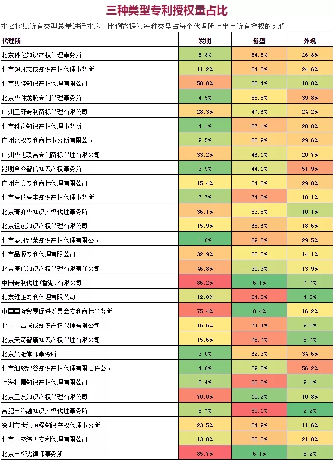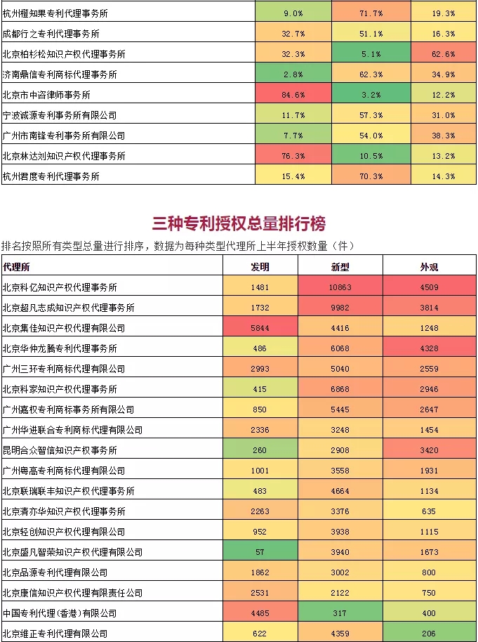 數(shù)據(jù)說(shuō)明:數(shù)據(jù)來(lái)源商業(yè)數(shù)據(jù)庫(kù),數(shù)據(jù)會(huì)因?yàn)樾畔⒐_(kāi)不完整性或公開(kāi)時(shí)效性造成一定誤差,數(shù)據(jù)為代理所發(fā)明、新型、外觀授權(quán)量,授權(quán)公告日20190101-20190630,取總量前100并按照授權(quán)量排序。數(shù)據(jù)檢索日2019年8月25日,數(shù)據(jù)為不完全統(tǒng)計(jì),未考慮特殊情況,與任何指標(biāo)無(wú)關(guān),以官方公開(kāi)數(shù)據(jù)為準(zhǔn)僅供參考!